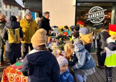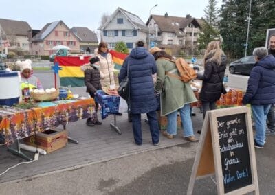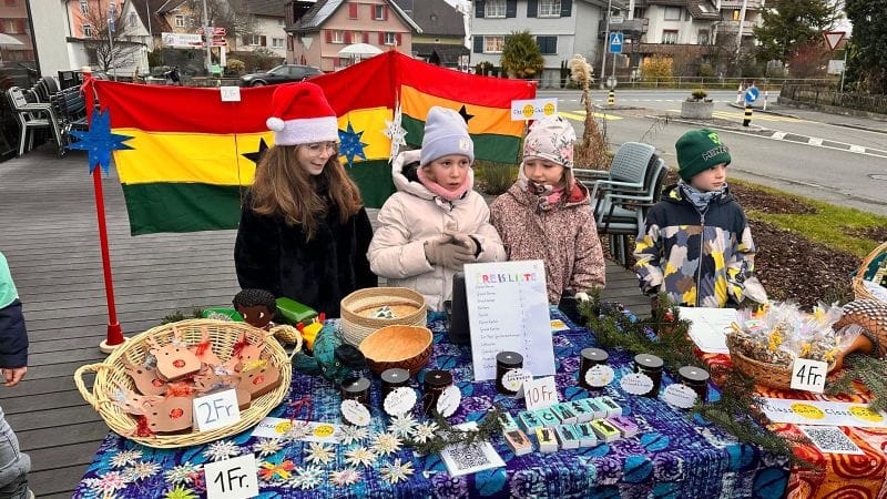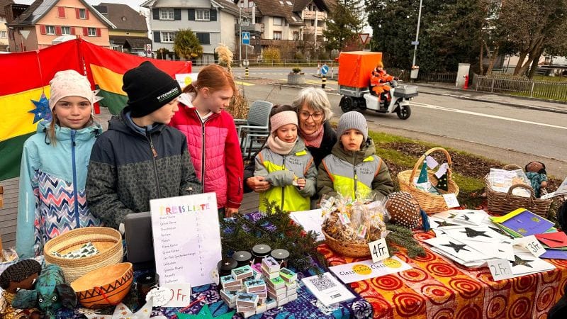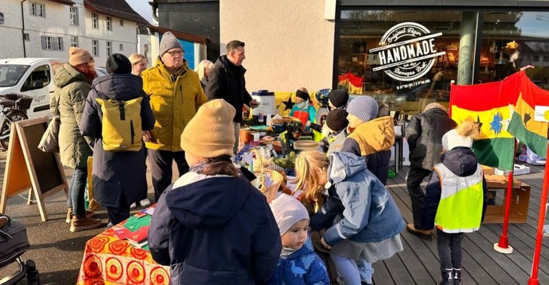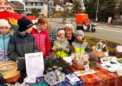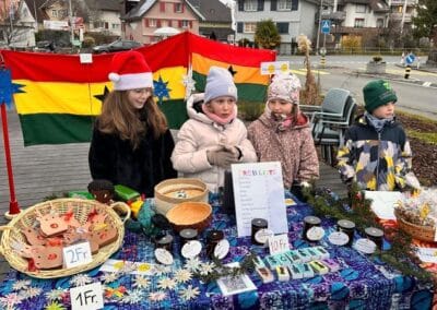 Dafür haben die Schüler Innen begeistert Deko-Sterne geklebt, Karten gebastelt, Lebkuchen verziert, Duftkerzen hergestellt, Granolamüesli geröstet, Geschenkanhänger umwickelt, Rentiere mit Schokonase geplottert und Zündholzschachteli mit einem persönlichen Druck verschönert. Dies alles haben sie stolz und mit Freude verkauft. Am Stand vor dem Füeger gab es auch Punsch und feine Amaretti zu geniessen. Das sonnige Wetter und viele Eltern, Freunde und Bekannte haben uns grosszügig unterstützt. So kam nach 4 Lektionen verkaufen der Betrag von stolzen Fr. 2000 zu Stande.