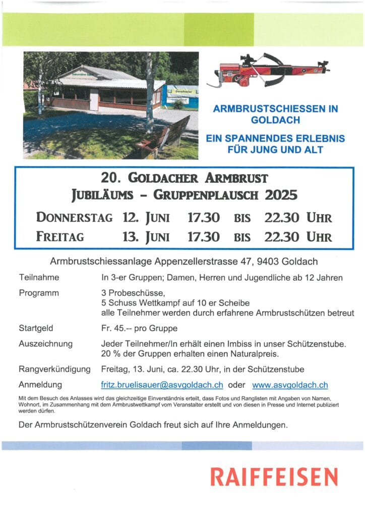 Plauschgruppenwettkampf ( Teams bestehend aus 3 Schützen) In der Gruppe können Damen, Herren und Jugendliche aufgestellt werden. Auch Einzelschützen sind willkommen.