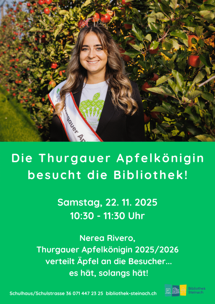 Die Thurgauer Apfelkönigin besucht die Bibliothek