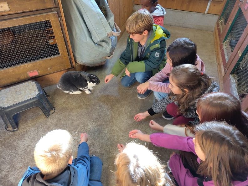 Wir besuchten die Kaninchen und Hühner bei Familie Mäder. Wir konnten die Tiere sogar streicheln und beobachten! Frau Mäder erzählte uns soviel Neues und Interessantes! Und wir löcherten sie mit Fragen 😊!