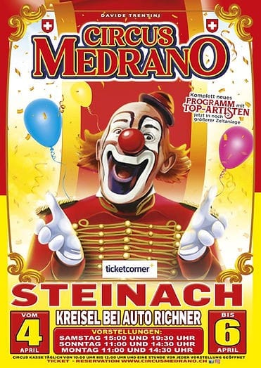 Zum Programm schreibt der Veranstalter: Im Jahr 2026 kehrt der Circus Medrano zurück, um sein Publikum mit einer neuen Show voller Emotionen, Magie und Tradition zu verzaubern. Mit einem authentischen klassischen Zirkusprogramm für die ganze Familie präsentieren sich Akrobaten, Jongleure, Clowns und spektakuläre Darbietungen in einer eleganten und zeitlosen Atmosphäre. Eine ehrliche Show für Gross und Klein, in der die Faszination des Zirkus unter dem Zirkuszelt weiterlebt.