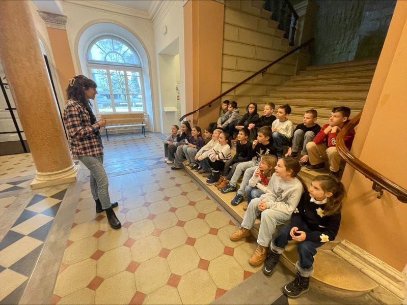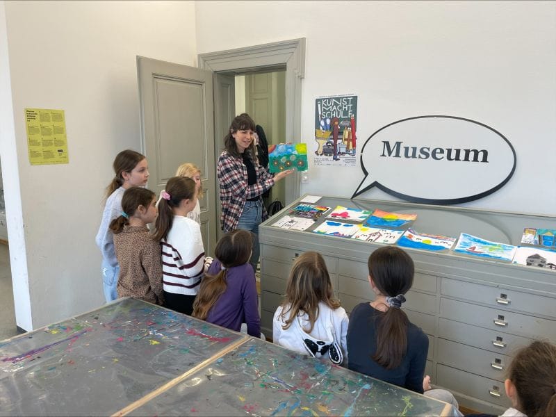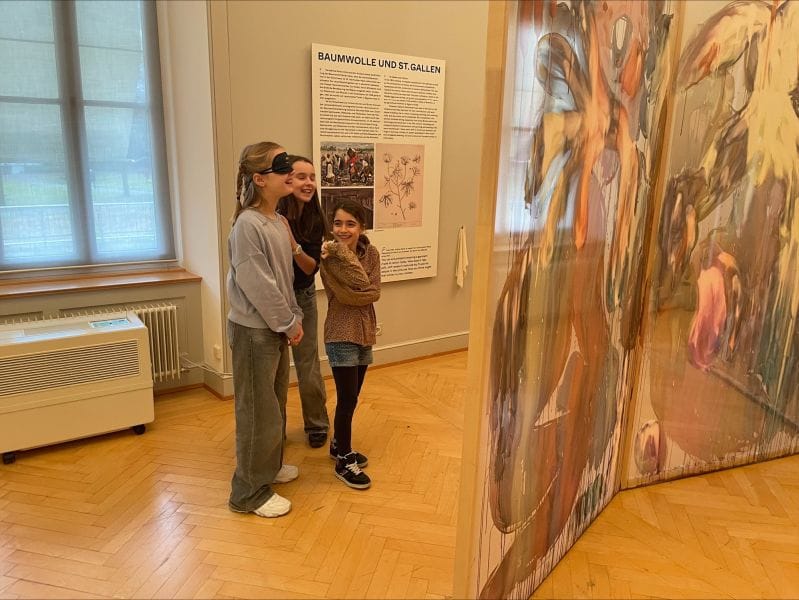 Mit dem Postauto fuhren wir von Steinach nach St. Gallen und spazierten am Stadttheater vorbei zum Kunstmuseum. Dort wurden wir empfangen und nach einer kurzen Einführung, die bereits auf Englisch stattfand, startete die Führung durch die Ausstellung.