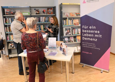 Man konnte sich nicht nur mit wichtigem Informationsmaterial eindecken. Die anwesende Ansprechperson von alzsg.ch konnte viele Fragen, Ängste und Zweifel kompetent beantworten und abfangen und unterstützend wichtigen Ratschläge mit auf den Weg geben.