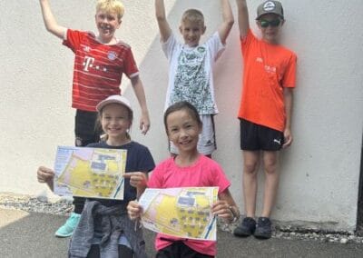 Nach der Pause war es dann so weit: Alle Kinder absolvierten den Orientierungslauf selbstständig. Sie suchten die Posten auf dem Schulareal, behielten die Übersicht und gaben ihr Bestes. Besonders spannend wurde es in den Wettkämpfen: Im Halbfinale und anschliessenden Finale zeigten die schnellsten Kinder ihr Können.