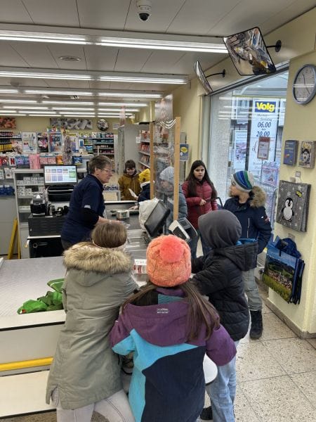 Passend zur Englisch Unit 3 (Food/Supermarket) erstellten die Kinder eine Einkaufsliste und gingen anschliessend in den Volg. Dort benannten sie die Lebensmittel auf Englisch und kauften diese ein. Ziel der Aufgabe war es, so viel Englisch wie möglich zu sprechen.