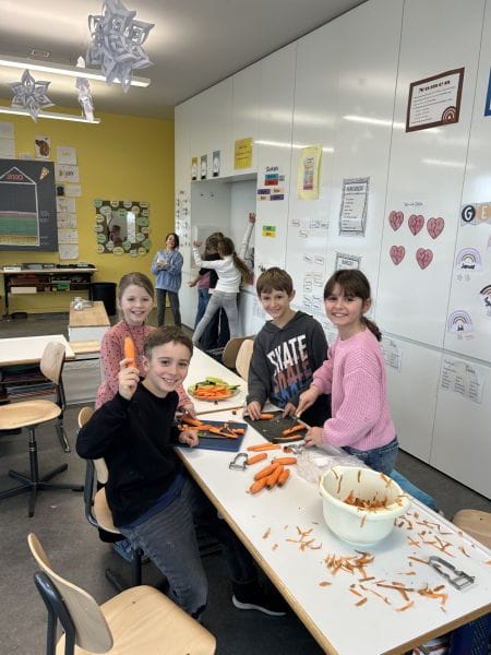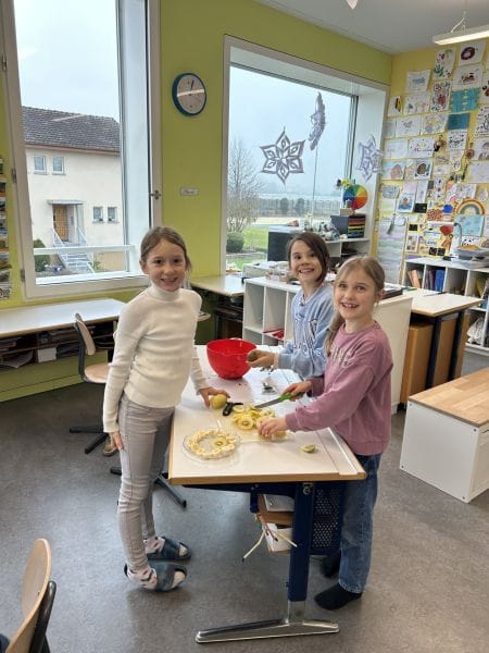 Im Fach NMG beschäftigen wir uns aktuell mit dem Thema Körper und gesunde Ernährung. Aus den eingekauften Lebensmitteln bereiteten die Kinder am Nachmittag einen gesunden Zvieri zu, den wir gemeinsam genossen.