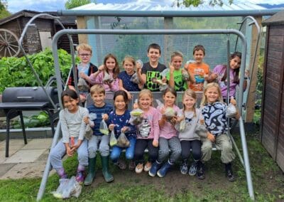 Im Sommer ist unser Gemüse tüchtig gewachsen. Am 24. September 2024 war es endlich so weit, und wir durften in den Schrebergarten ernten gehen. Mit guten Schuhen und Handschuhen ausgerüstet haben alle tüchtig in der Erde gebuddelt.
