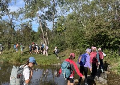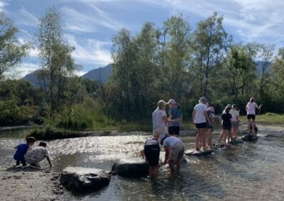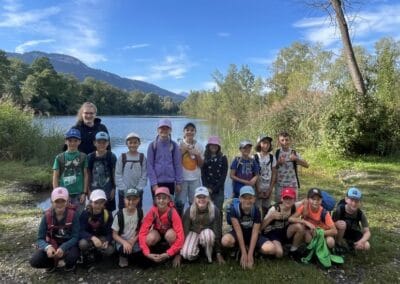Es ist Sommerzeit und damit wieder Schulreisezeit😊! Deshalb packten wir unsere Wanderrucksäcke und fuhren mit dem Schulbus nach Diepoldsau. Dort angekommen, wanderten wir über wackelige Steinbrücken dem Alten Rhein entlang. Unterwegs legten wir eine Znünipause ein und kühlten unsere Füsse im Wasser des Naherholungsgebietes ab. Gestärkt ging es noch einmal kurz zu Fuss durch den Vitaparcours und Wald weiter, bis das Highlight unserer Schulreise folgte: das Strandbad in Diepoldsau. Dort erwarteten uns nach unserem gemütlichen Mittagspicknick zahlreiche Attraktionen: Pirateninsel, Seilzugfloss, Wasserrutsche, Sprungturm und vieles mehr. Brandneu gab es sogar einen Wasseradventurepark inkl. -trampolin, welcher alle Kinderherzen höherschlagen liess! Müde, aber zufrieden machten wir uns auf den Weg zum Zoll, wo uns der Schulbus wieder erwartete und zurück nach Steinach brachte. Es war ein richtig toller Tag, welcher uns noch lange in Erinnerung bleiben wird!