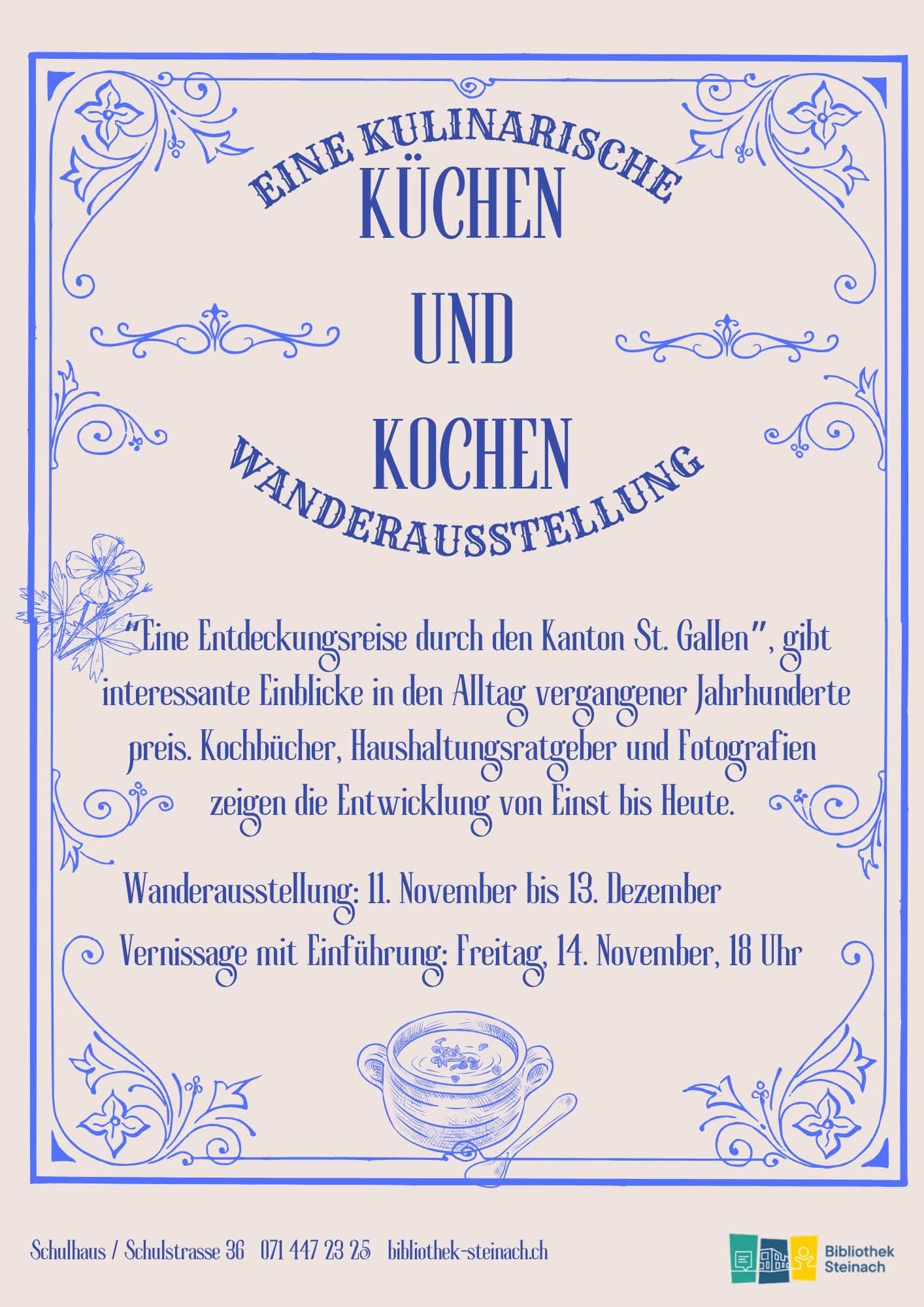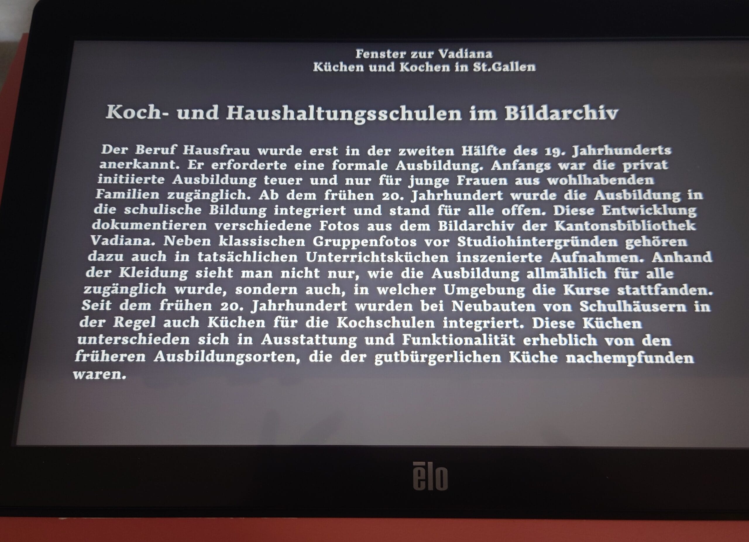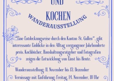 Begeben sie sich auf die kulinarische Entdeckungsreise durch den Kanton St. Gallen. Sie erhalten einen Einblick in den Alltag vergangener Jahrhunderte sowie Manuskripte in handschriftlichen Kochbüchern, Rezepte, Haushaltsratgeber. Zu entdecken sind auch historische Fotografien aus exklusiven Lehrstätten, mit Eindrücke aus dem Unterricht von einst.